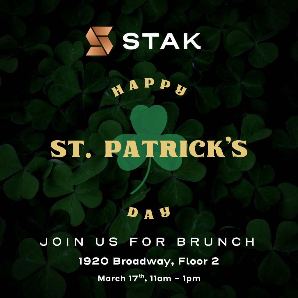 Get into the spirit of the season at our St. Patty’s Day Happy Brunch! Join us for a festive gathering complete with themed refreshments, good company, and a touch of Irish cheer within our 1920 Broadway Coworking Space!